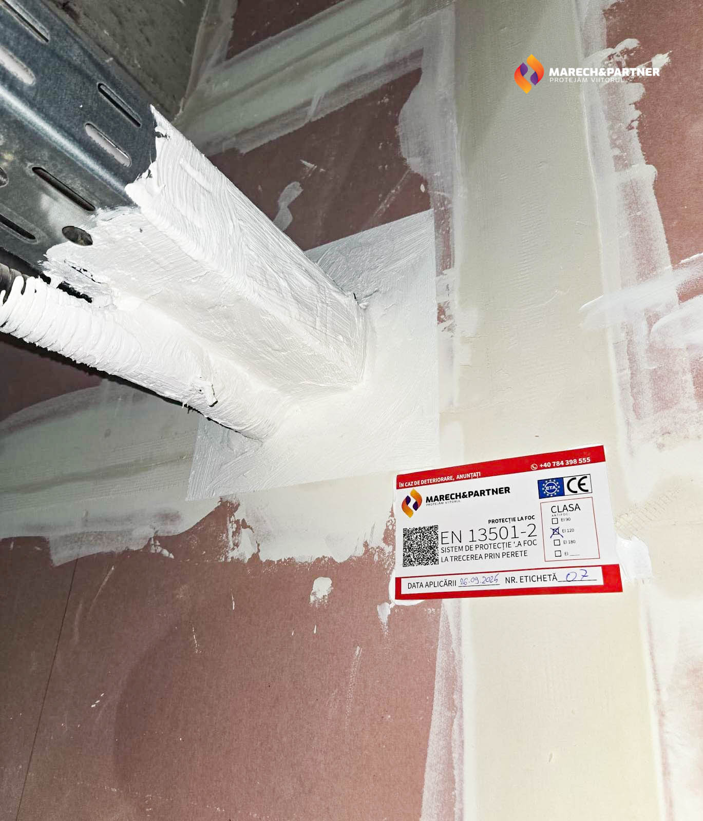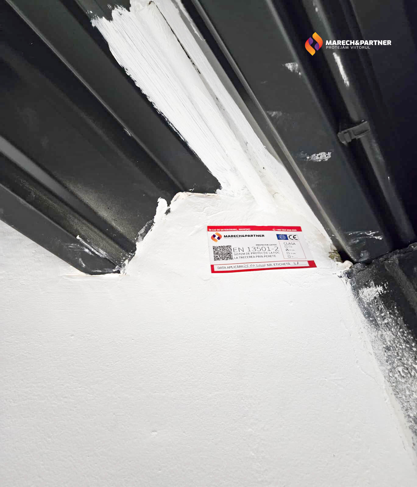 Aplicarea Materialelor de Calitate Superioară: Am executat lucrările utilizând exclusiv materiale de cea mai înaltă calitate, specifice rezistenței la foc. Fiecare produs a fost ales pentru a garanta performanța cerută în caz de incendiu, asigurând integritatea, stabilitatea și izolarea necesară.